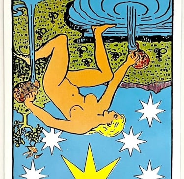 Rachel Pollack descreve a Estrela como um vislumbre do paraíso na Terra. Não o paraíso monumental, mas aquele que se revela no pequeno, um corpo que repousa após a febre, um rio que corre sem pressa, uma inspiração criativa que surge suave.