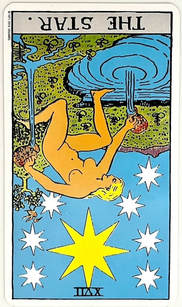 A Estrela, quando invertida, pode sinalizar esperanças vãs, fuga da realidade, fantasia excessiva.