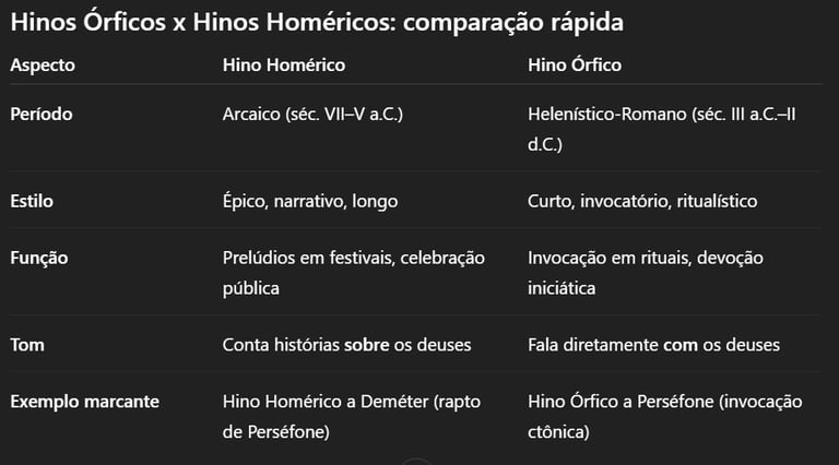 E aqui está a diferença que poucos percebem: enquanto o hino homérico conta sobre o divino, o hino órfico fala com o divino.