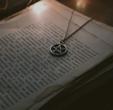 No centro do altar, o pentagrama é a base. Sobre ele repousam os objetos, as oferendas, os encantamentos. Ele segura. Ele ancora. Ele representa a terra, o corpo, o centro. Não precisa ter um pentagrama. Pode ter um símbolo seu. Pode ser pintado à mão. Pode ser uma pedra lisa.