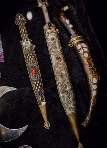 Punhais representam corte. Corte de ilusões, vínculos, resistências. Sua lâmina é fina e precisa. Um punhal mágico não serve para matar, mas para separar. Ele delimita espaço, traça o círculo, aponta o norte. Ele diz: daqui para lá é outro mundo. E você tem o poder de atravessar.