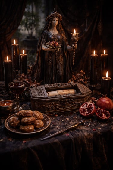 Se desejar aprofundar o ritual, este é o momento ideal para recitar o Hino Órfico a Perséfone ou oferecer uma romã.